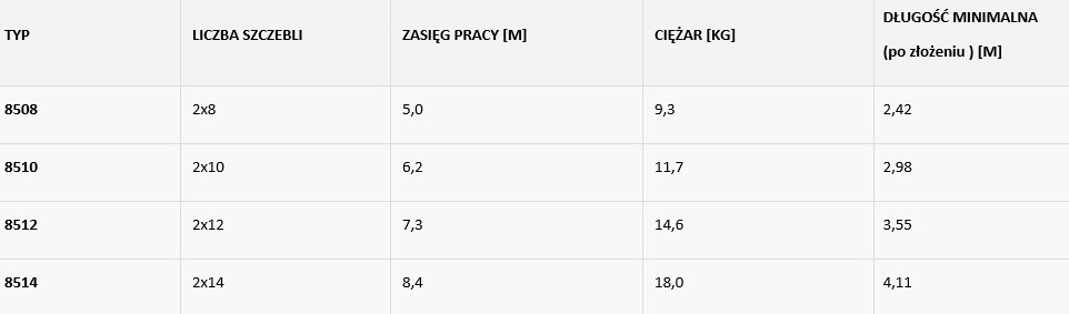Dopuszczalne obciążenie drabiny wynosi 150 kg. Drabina spełnia ona normy EN-131. Gwarancja producenta wynosi aż 7 lat.