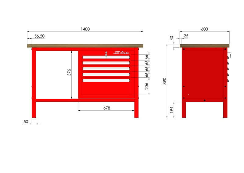 - solidna konstrukcja stołu warsztatowego wykonana jest z kształtownika 50 x 50 x 2 mm