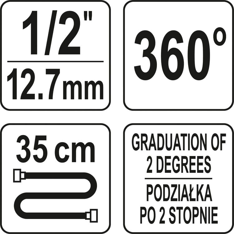 KĄTOMIERZ Z UCHWYTEM MAGNETYCZNYM YATO DO KLUCZA DYNAMOM. 1/2''