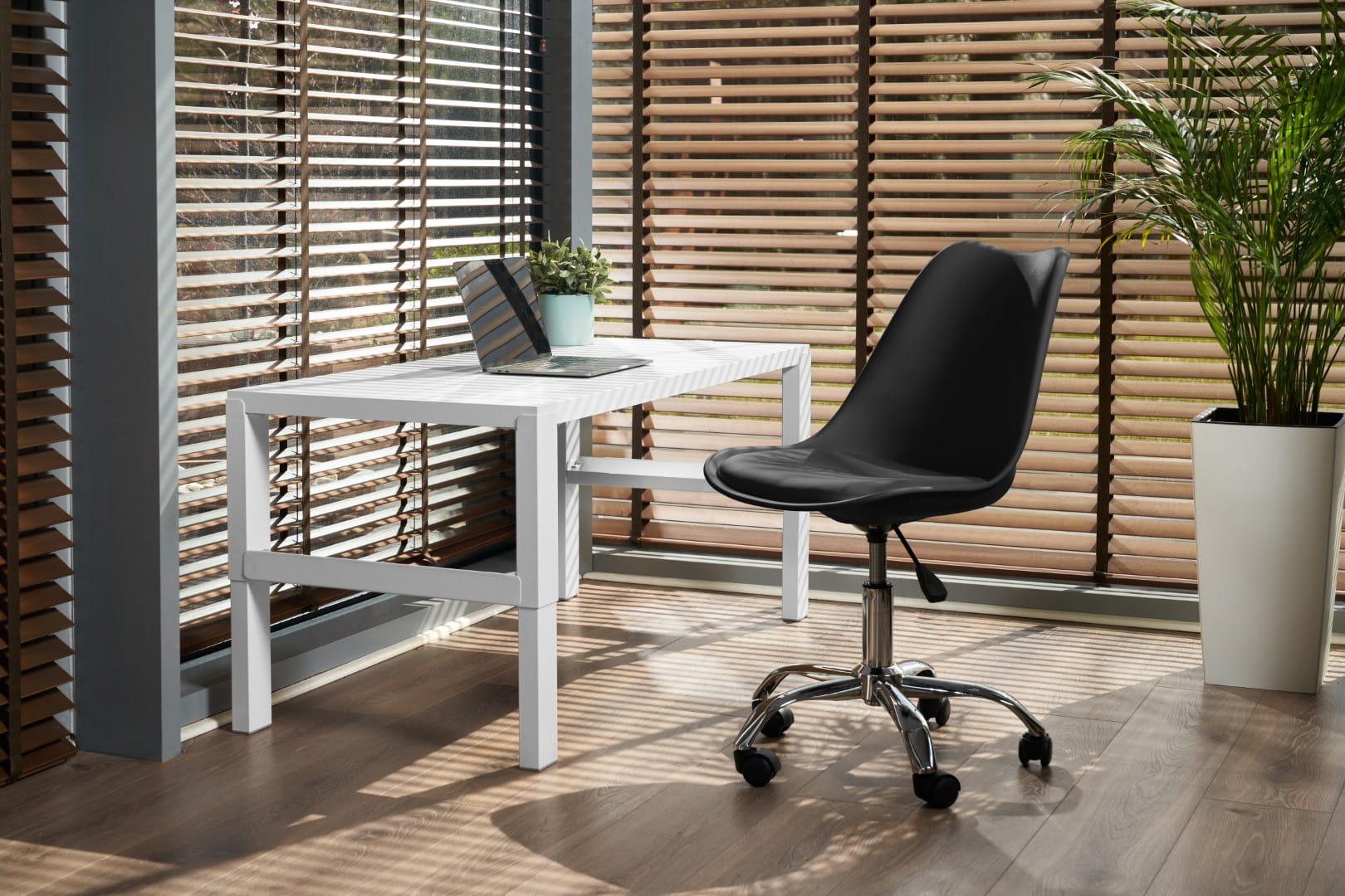 Krzesło posiada siłownik, dzięki któremu można dostosować wysokość siedziska do wymaganej wysokości.