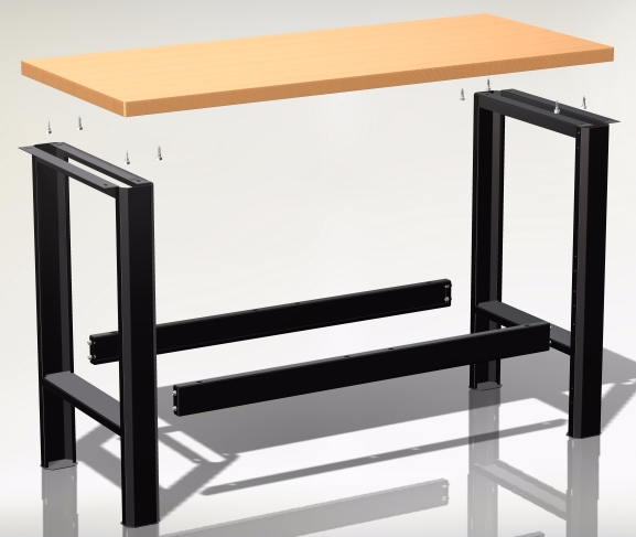 - Połączenie poprzeczek z nogami stołu warsztatowego za pomocą śrub imbusowych M6 w klasie 8.8