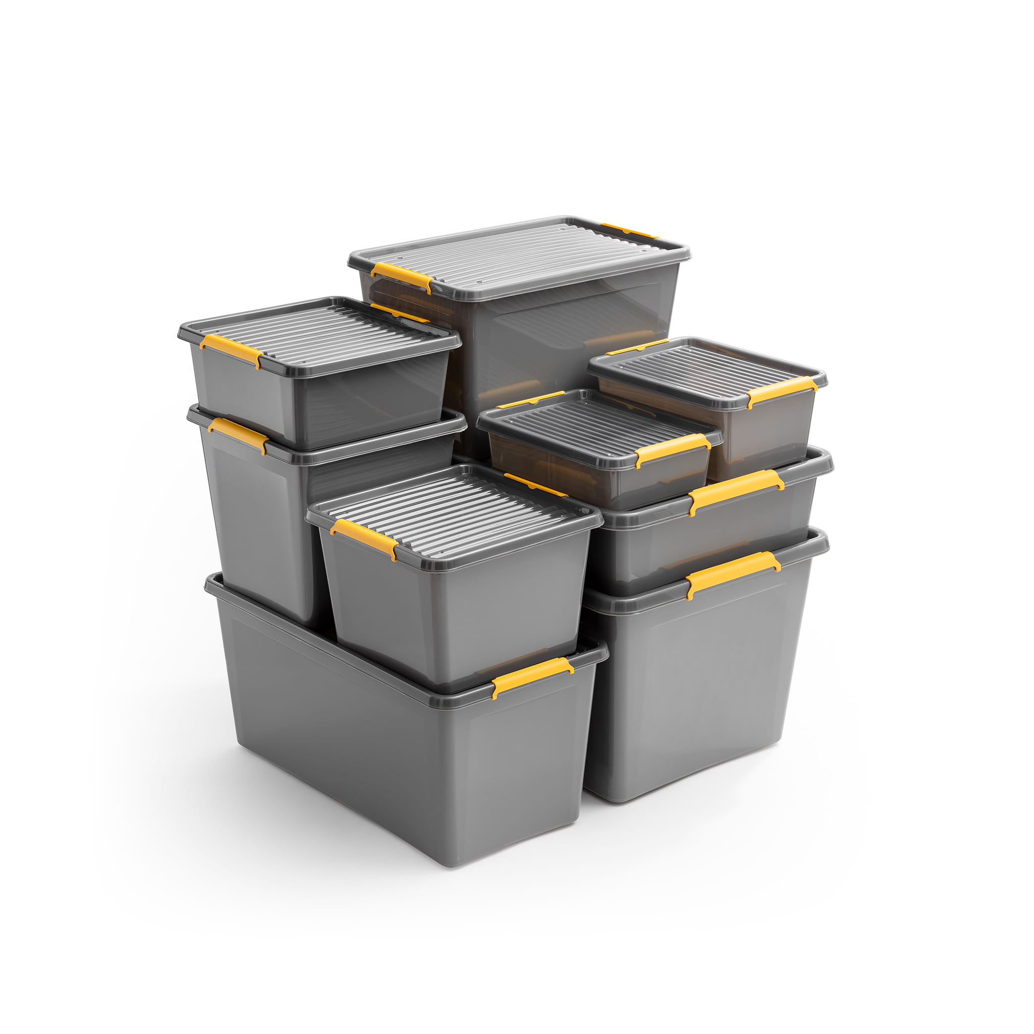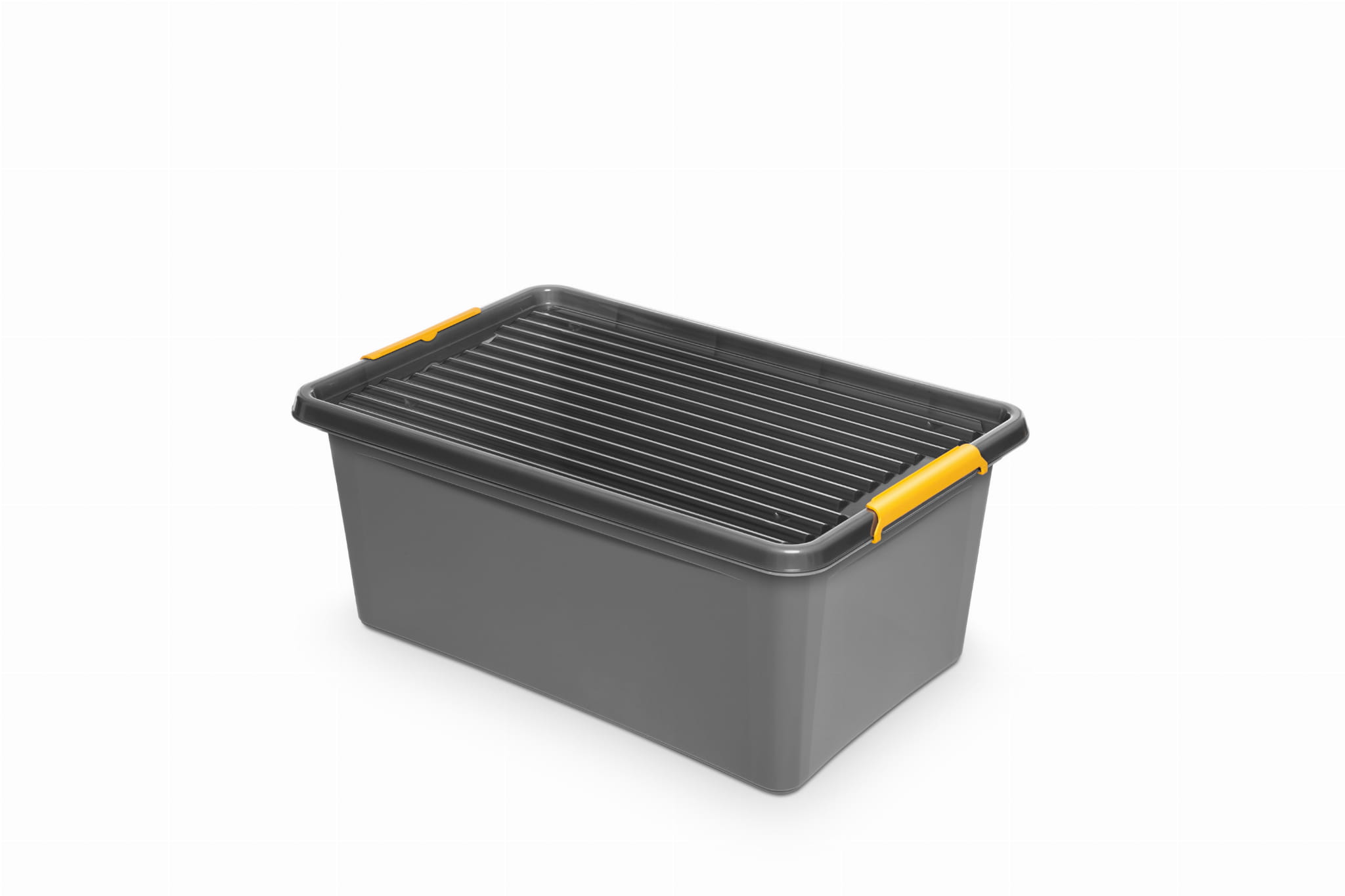 Pojemniki SolidStore 40 l są wykonane z wysokiej jakości PP -kopolimery, które zapewniają podwyższoną odporność na wstrząsy i upadki oraz ochronę przed niekorzystnymi warunkami pogodowymi, są bezpieczne dla zdrowia, praktyczne i wygodne. Posiadają nowoczesny design: szary kolor z dymioną, przezroczystą pokrywką z karbowaniem oraz żółtymi klipsami.