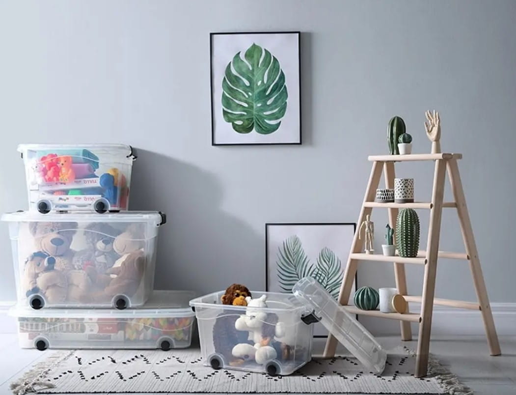 Zamontowane kółka ułatwiają przesuwanie pojemnika w dowolne miejsce. Pojemniki doskonale sprawdzą się w pokoju dziecięcym jako organizer na klocki i inne zabawki.