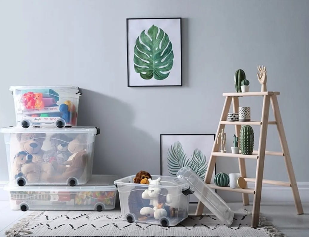 Zamontowane kółka ułatwiają przesuwanie pojemnika w dowolne miejsce. Pojemniki doskonale sprawdzą się w pokoju dziecięcym jako organizer na klocki i inne zabawki.