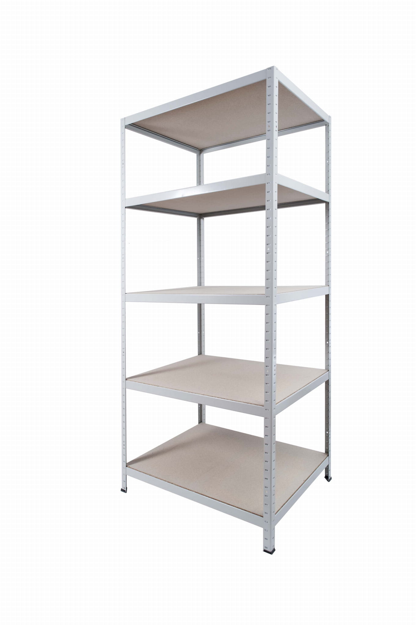 Regały zaczepowe charakteryzują szybkim i łatwym montażem, który odbywa się bez wykorzystania śrub i nakrętek. Stelaż regału został wykonany z blachy malowanej proszkowo w kolorze standardowym - jasnym popielatym lub w całości z blachy ocynkowanej, półki wypełnione są gładką płytą wiórową.