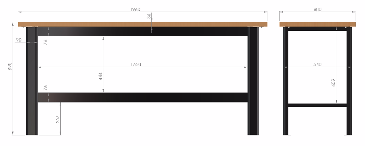 STÓŁ WARSZTATOWY PODSTAWOWY BLAT SKLEJKA 40mm (SZER. BLATU 1960 mm)