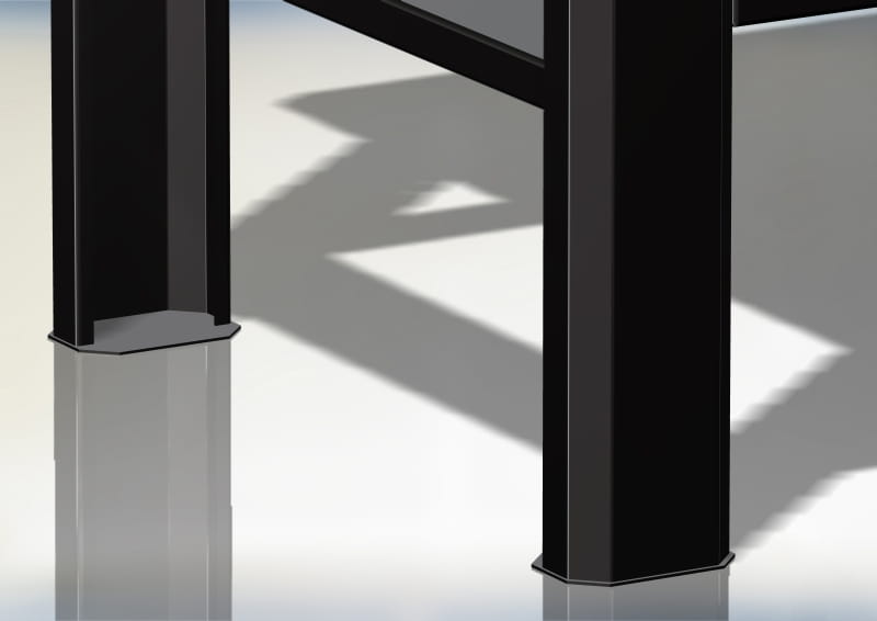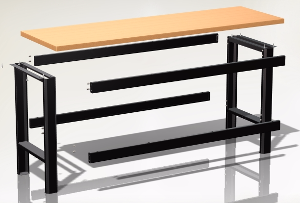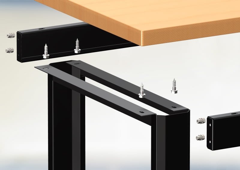 - Połączenie poprzeczek z nogami stołu warsztatowego za pomocą śrub imbusowych M6 w klasie 8.8