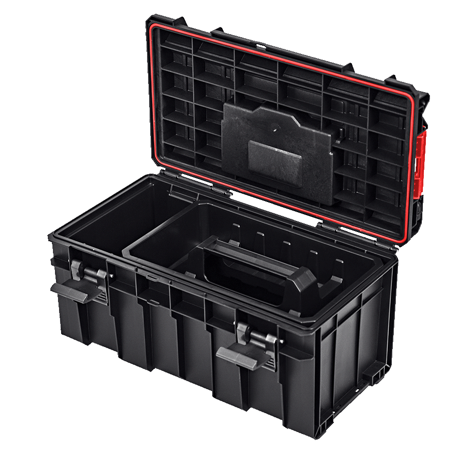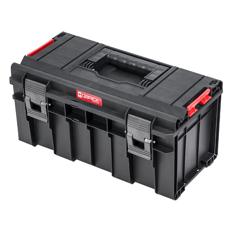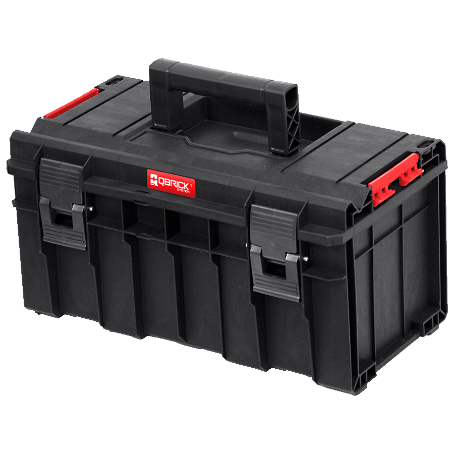 Qbrick System PRO 500 Basic to kombinacja najlepszych cech w swojej klasie: elastyczna uszczelka (wodoszczelność i pyłoszczelność), prowadnica do cięcia w pokrywie, poliamidowe zapięcia i konektory boczne, wygodna rączka i pojemna tacka.