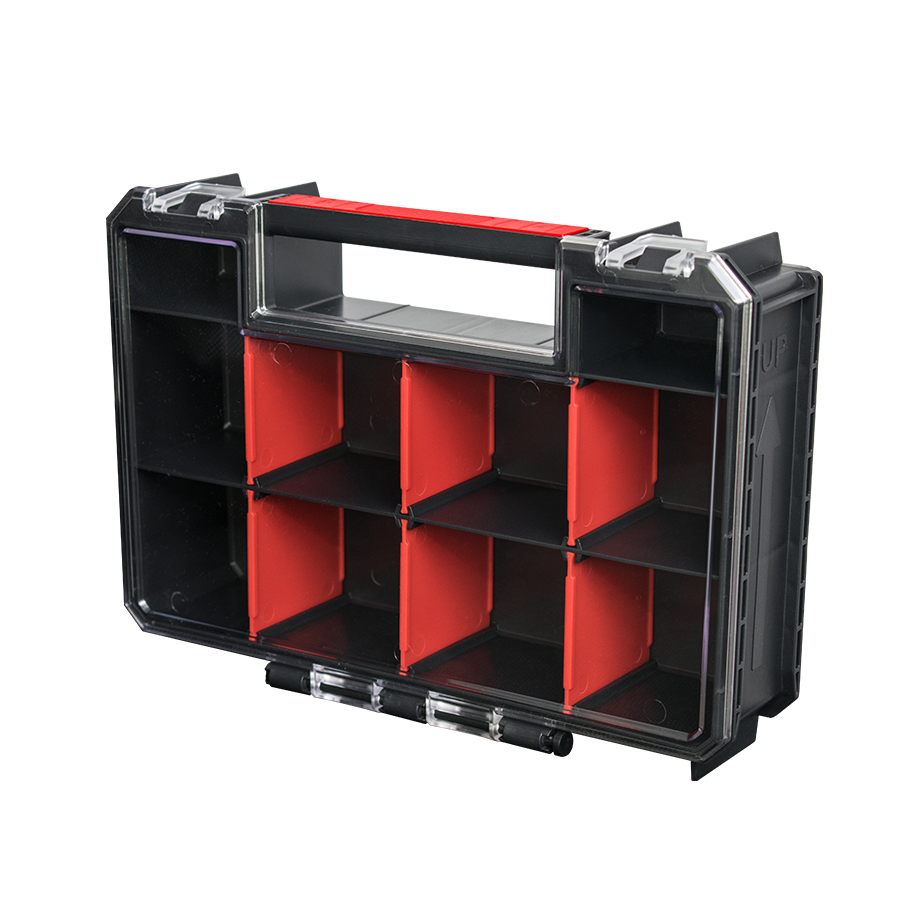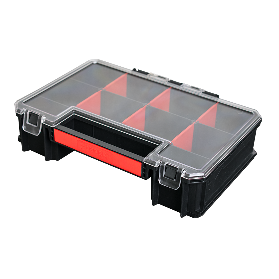 Organizer Multi to naturalne uzupełnienie dla Toolbox i Box 200 - dzięki specjalnym prowadnicom każdy z tych modułów pomieści od 4 do 6 organizerów multi. Poliwęglanowa pokrywa, regulowane przegrody oraz wygodna rączka zapewniają trwałość i ergonomię pracy.