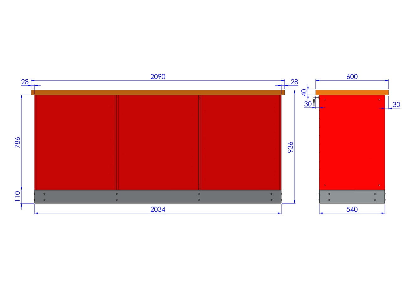– boki stołu przystosowane do zamontowania płyt perforowanych na zawieszki narzędziowe